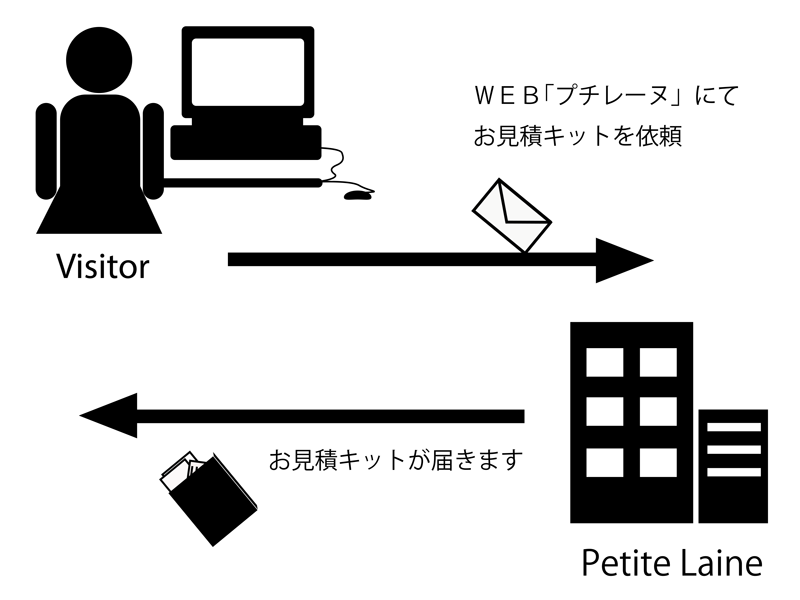 ご依頼から3営業日~5営業日で「お見積キット」をお届けいたします。 万が一「お見積キット」が届かない場合はご連絡ください。 ご連絡先:03-3783-7918
