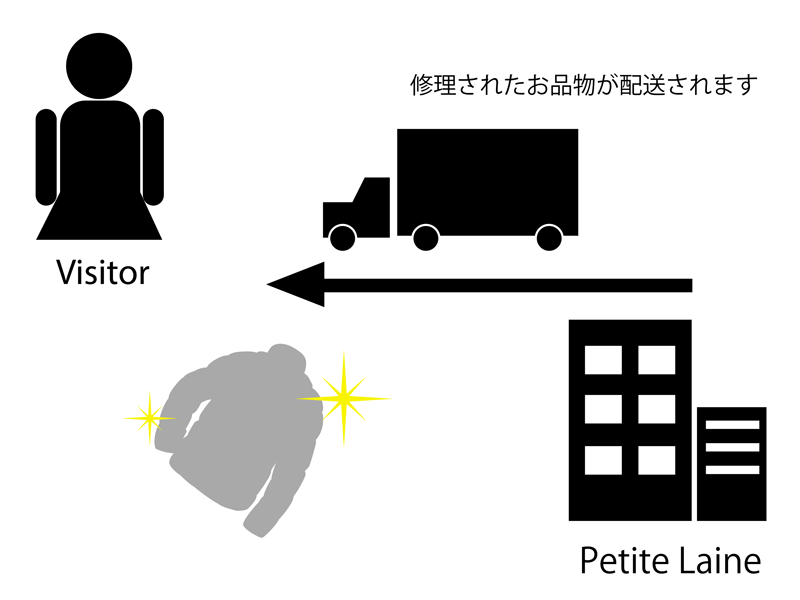 お振込み確認後、約3営業日~7営業日までにお品物をお届けいたします。 お直し内容や時期によって納期が変動いたしますので、お見積りに明記いたします。 (配送時、お客様へメールでお届け着日、配送の伝票番号をお伝えいたします。) (配送料はお見積金額に加算しております。)