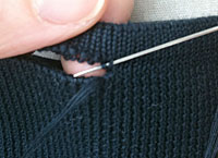 両バン編みとは表・裏ともにリブ編み、イギリス編み、模様編みなど交互に配置している編み地を繋げ合わせる方法である。表をはぐ目と裏をはぐ目をつぶさないようにほどいていくことが難しく、表と裏を2回つなぎ合わせ、且つ1目も落とすことが出来ない。作業時間も通常の倍近く必要で、高度な技術が必要とされている。他社では真似が出来ない匠の技の一つである。