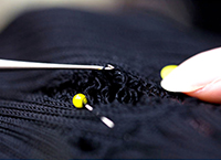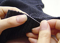長年ニット修理に携わる熟練者にしかできない技のひとつが「ほつれ直し」です。 編地の途中に空いた穴を塞いで糸始末を裏側に施すため、表からは直した跡が見えないほど綺麗な仕上がりになります。裏の糸の始末は当社特有の技術継承で、受注数も多く、年間20,000 枚以上の「ほつれ直し」を承っています。